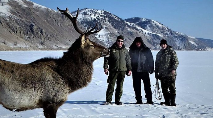 Инспекторы берегового лесничества ФБГУ «Заповедное Прибайкалье» спасли изюбря, который не мог передвигаться по льду реки, куда, предположительно, его загнали волки.
