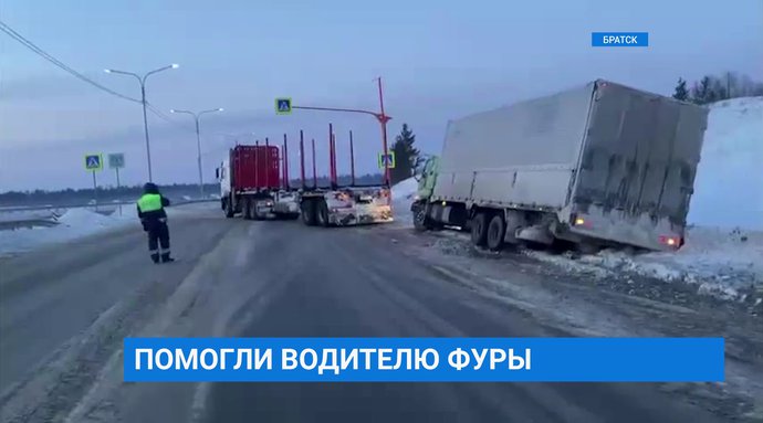 Водителю фуры, съехавшему в кювет, помогли братские полицейские