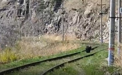 Медведь испугал туристов на Кругобайкальской железной дороге